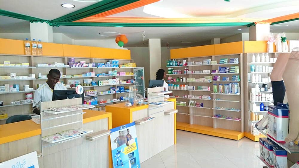 Un projet géré de A à Z : Cette réalisation est le fruit d’une longue collaboration avec le pharmacien. Nous avons fait plusieurs rendez-vous de préparation en France et au Togo. Il a été séduit par notre réactivité, notre équipe commerciale et de pose présente en Afrique et la qualité de fabrication du mobilier.